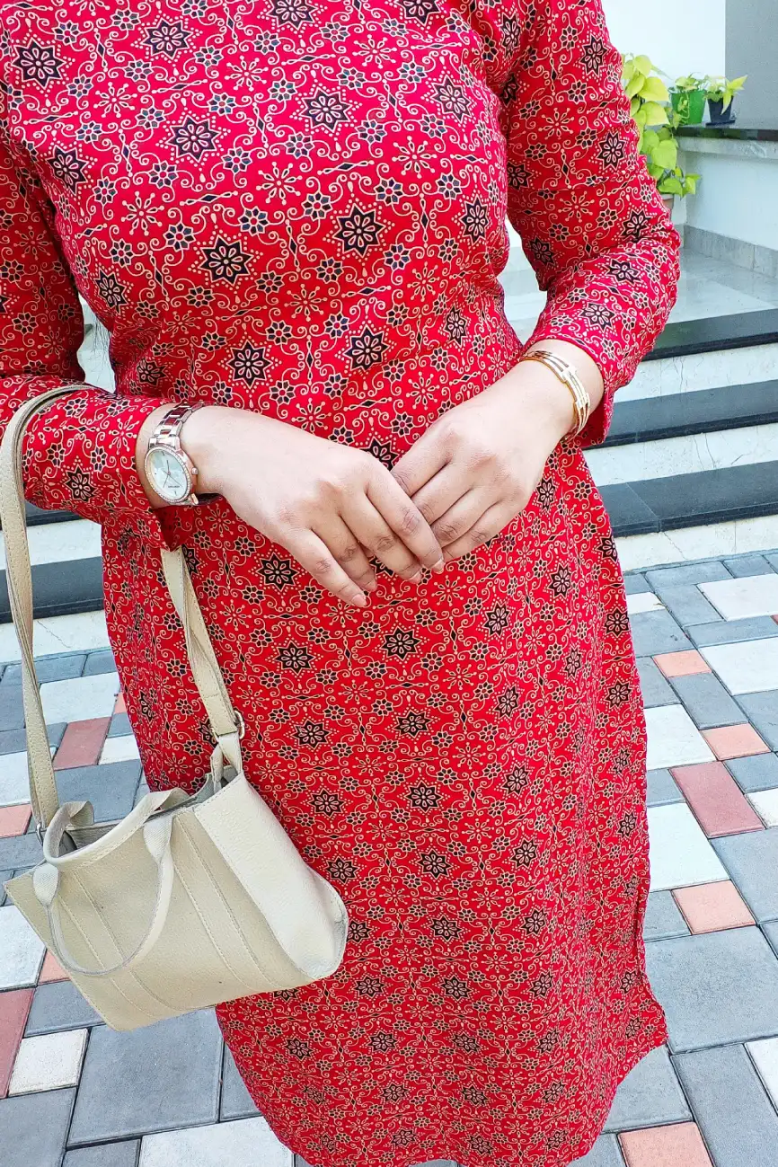 Full Body Ajrakh Cotton Kurti – FFS1458 – Red [PRE-BOOK]