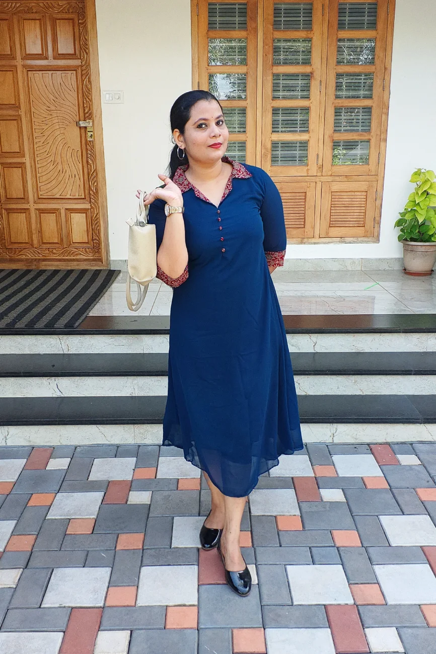 Modern Collar Kurti – FFS1445- Teal Blue [PRE-BOOK]